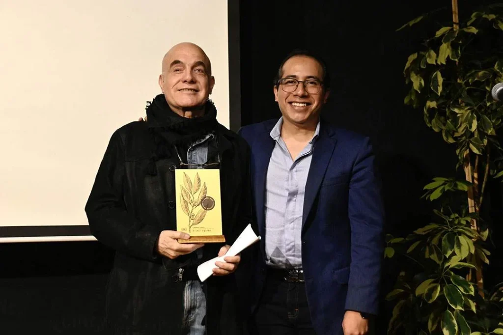 Finalmente, Fares Moreno entregó a Víctor Ugalde el “Laurel” premio de reconocimiento de la Facultad de Cine por su enorme trayectoria artística, agradecemos su importante aporte a la educación cinematográfica.